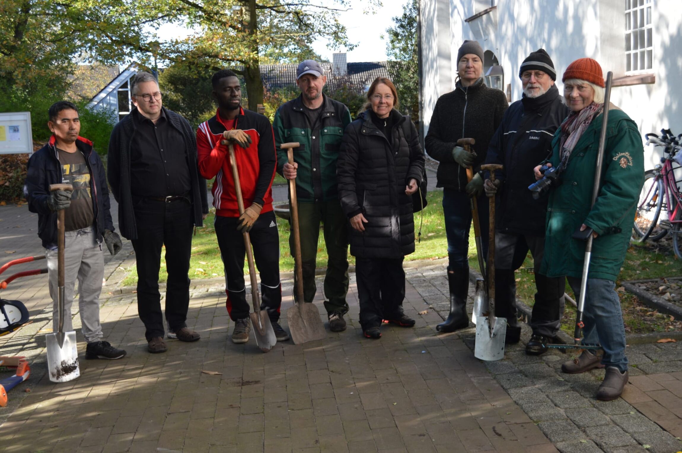 Der Aktionstag im "Artengarten Sankt Margarethen" hat einen gewaltigen Fortschritt gebracht. Die Kirchengemeinde in Stotel bedankt sich bei den Helferinnen und Helfern, die mit eigenen Spaten anrückten und in beeindruckendem Tempo auf dem ehemaligen Friedhof hinter der Kirche verschiedene bienenfreundliche Sträucher und eine Trauerweide einbuddelten. Die Gehölze erhöhen nebst etlichen Stauden vor dem Gotteshaus die Artenvielfalt und verbessern damit das Nahrungsangebot für Insekten und andere Tiere. Hundsrose, Apfelbeere, Zaubernuss und eingriffeliger Weißdorn sollen nun wachsen ebenso wie die Haselnusssträucher, damit die Eichhörnchen sich ihr Futter für den Winter selbst besorgen und verstecken können. Die possierlichen Kletterkünstler werden aber trotzdem noch gefüttert, weil sie so schusselig sein sollen, dass sie manchmal ihre Wintervorräte nicht wiederfinden. Johanniskraut, Schafgarbe, Bergflockenblume, Lungenkraut und andere Stauden sollen das Nahrungsangebot für die Tierwelt ebenfalls ergänzen. Die Kräuter in der Spirale, die die Konfirmand:innen bepflanzt haben, sind bereits angewachsen. In Kürze sollen noch 100 Quadratmeter Blühwiese am Gemeindehaus vorbereitet und zunächst mit 1000 Frühblühern bestückt werden, bevor die spezielle, regionale und auf den Standort abgestimmte Saatmischung aufgebracht wird. Damit wird das Projekt "BiodiversitätsCheck in Kirchengemeinden"(BiCK) der Landeskirche Hannovers abgeschlossen, an dem unter insgesamt 60 Kirchengemeinde auch St. Margarethen in Stotel teilgenommen hat. Barbara Fixy