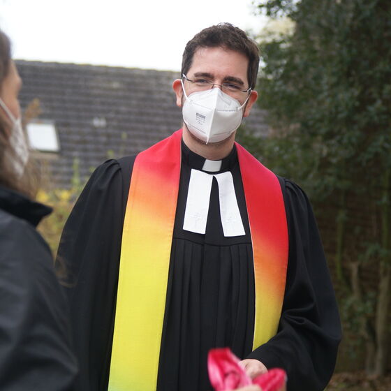 Pastor Behrens stimmte das neue Lied an, das in Psalm 96 gesungen wird. Doch die Stimmungsschankungen in der Pandemie zwischen Lockdown und Öffnung ließen fröhliches Singen nicht immer zu, schon gar nicht in der Kirche, bemerkte er. Er habe jedoch festgestellt, dass sich Schlechtes in Gutes wandeln lasse, selbst wenn man zunächst ein Klagelied angestimmt habe. Dann ließ er die Version des Psalms 96 aus der Volxbibel (kein Rechtschreibfehler, wird wirklich so geschrieben) von Martin Dreyer hören, die man sich als Rap vorstellen darf. Sie beginnt so: "Singt unserm Gott ein neues Lied mit immer härter werdendem Beat!"