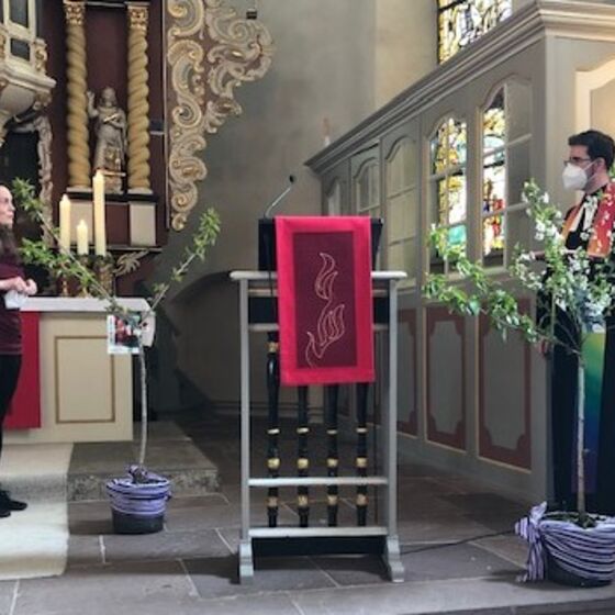 Kirchenvorsteher Jan Hinnerk Bathmann begrüßte Behrens im Namen beider Kirchenvorstände und zeigte sich zuversichtlich, dass die Zusammenarbeit gut gelingen könne. Er überreichte eine Bibel. Svenja Heuwinkel, Leiterin des Gospelchores "Joyful Voices", schenkte im Namen des Chores zwei blühende Kirschbäume. Constanze Casper (Orgel) und Rainer Priebe (Trompete) begleiteten den Gottesdienst, was Behrens und die Gemeinde sehr zu schätzen wussten. fix