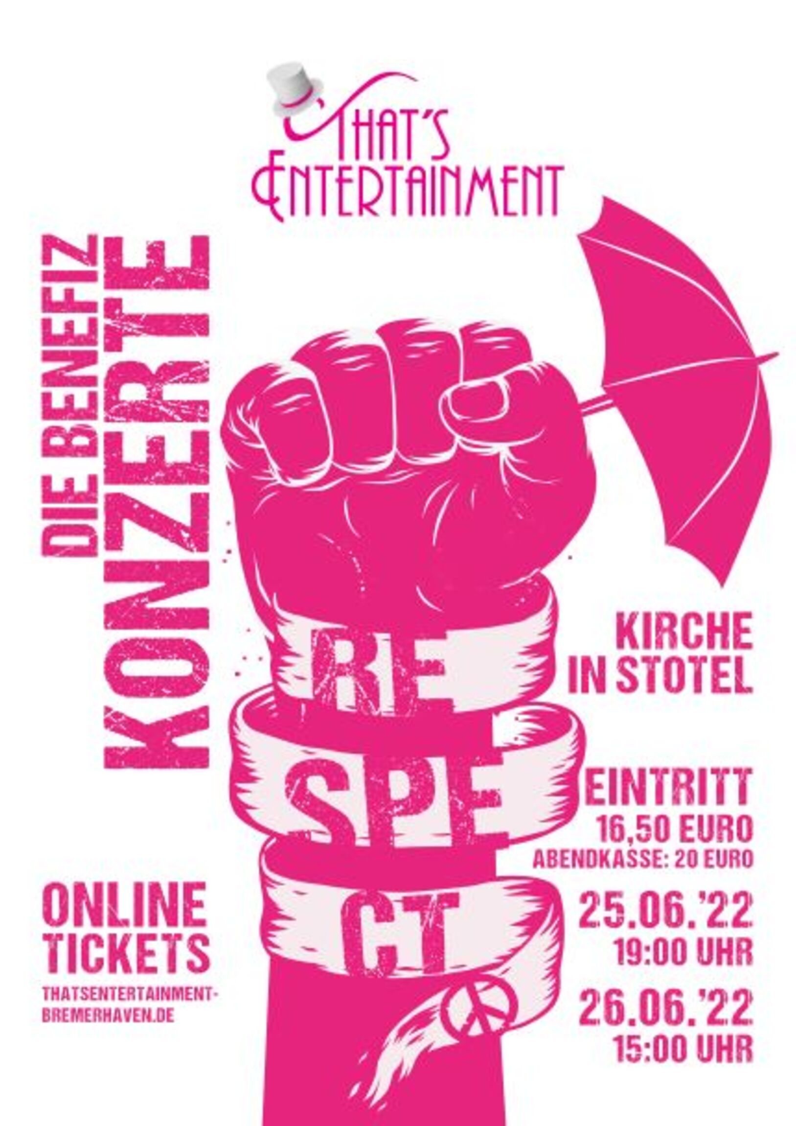 Der Showchor "That's Entertainment" gibt am 25. Juni ab 19 Uhr und 26. Juni ab 15 Uhr in der St. Margarethenkirche in Stotel ein Benefizkonzert. Unter dem Titel "Respect" verspricht der Chor aus Bremerhaven unter der Leitung von Renate Priebe, seine Zuhörerinnen und Zuhörer für zwei Stunden dem Alltag zu entreißen und sie auf eine Reise mitzunehmen, um den richtigen Takt für den Rhythmus des Lebens wiederzufinden. Nach zwei belastenden Jahren freut sich der Chor auf die beiden Konzerte. Wer die Gruppe kennt, weiß, dass sie ein Feuerwerk der Emotionen zündet. Ausschnitte aus West Side Story, Les Miserables und Hamilton stoßen auf Songs wie Ose Shalom, Heal the World und Respect. Festival Sanctus. When you believe und Eye of the Tiger werden die ehrwürdigen Mauern der Kirche in Stotel noch stärker machen. Karten über www.thatsentertainment-bremerhaven.de, Restkarten an der Abendkasse. Eine Hörprobe gibt es hier: https://www.youtube.com/watch?v=1aXY1i_99PERespect"