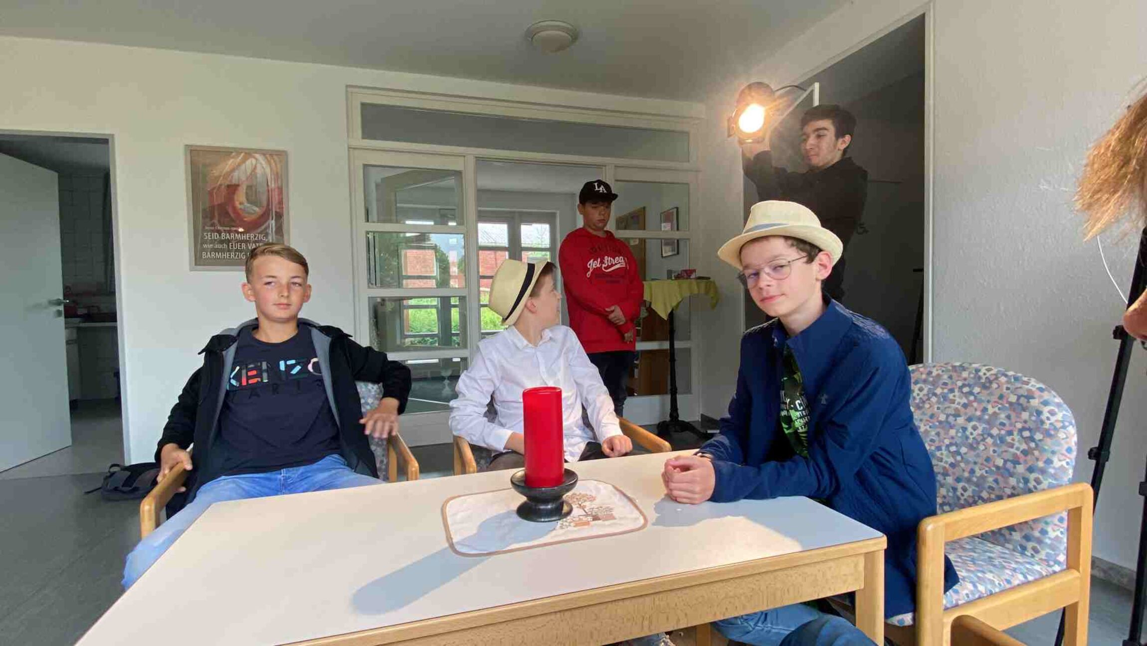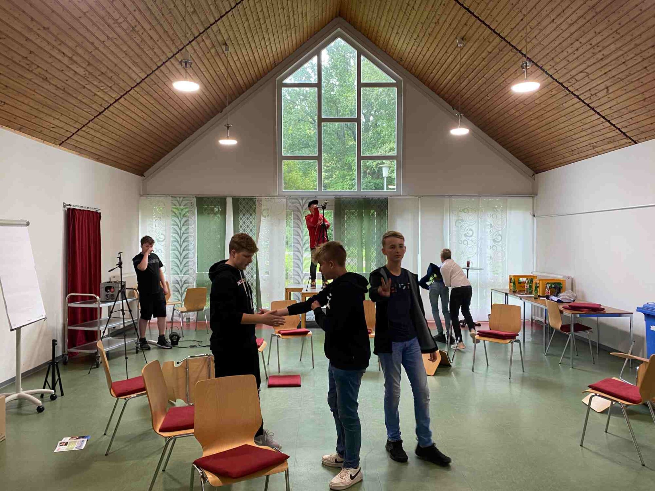 Am 08. und 09. Juli haben wir hier in Stotel unser erstes Konfi-Film Projekt durchgeführt. Es waren Konfis aus allen Gemeinden der Region dabei und wir hatten uns sofort viel vorgenommen: Einen Kurzfilm von vorne bis hinten selbst zu erstellen. Zuerst haben wir besprochen, welches Genre wir erkunden wollen. Das hat uns sehr schnell in die Richtung "Thriller mit kömidiantischen Einlagen" gebracht. Von da aus ging es weiter mit der Planung der Szenen sowie der Verschriftlichung des Dialogs.